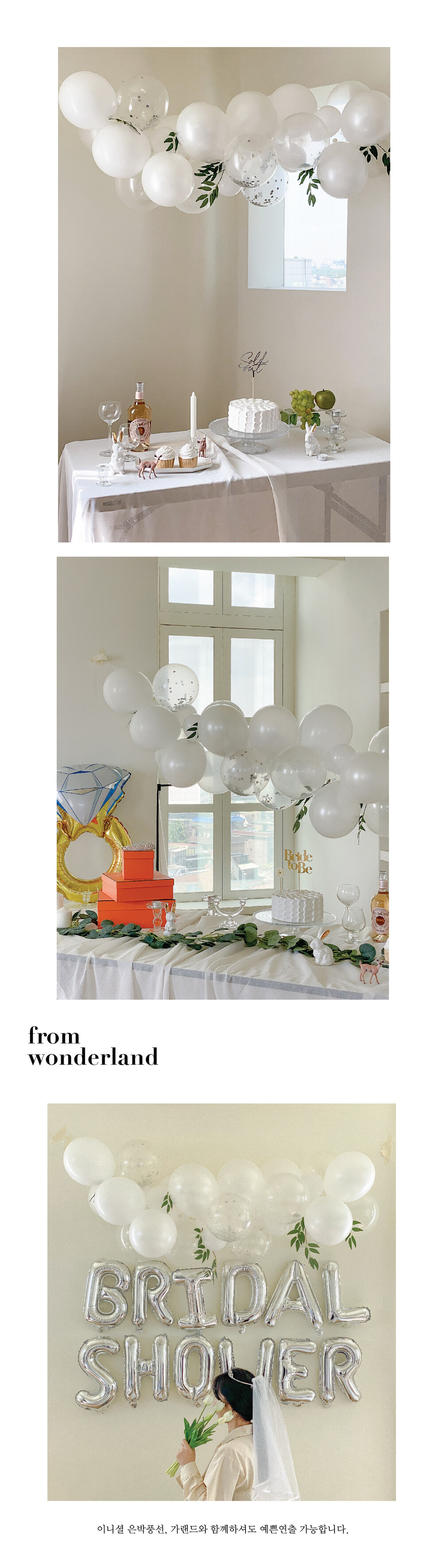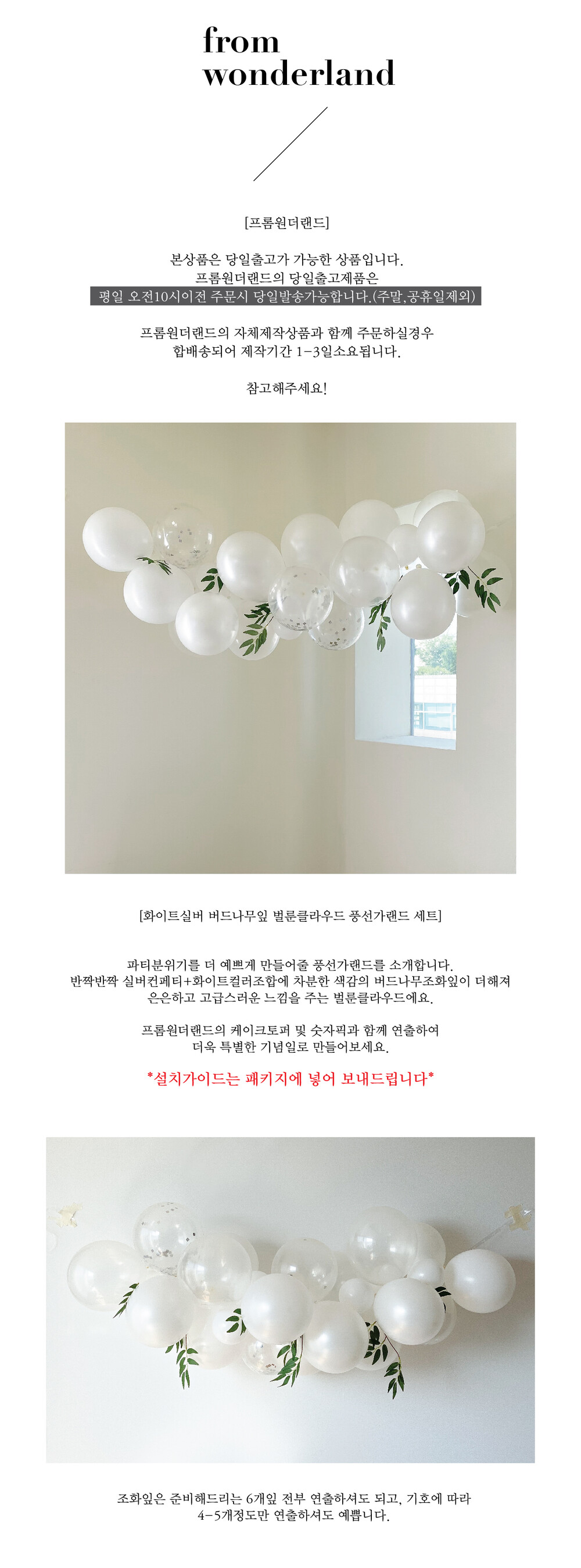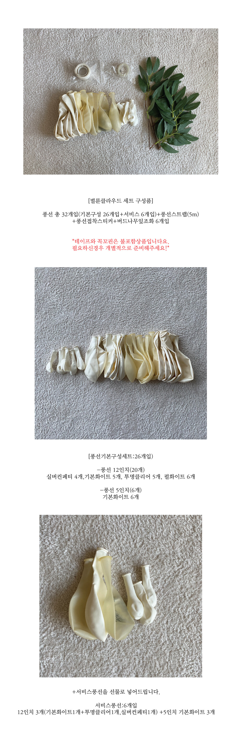 화이트실버 버드나무잎 벌룬클라우드 구름모양 아치 풍선가랜드 세트 (풍선+조화+풍선스트랩+접착스티커)