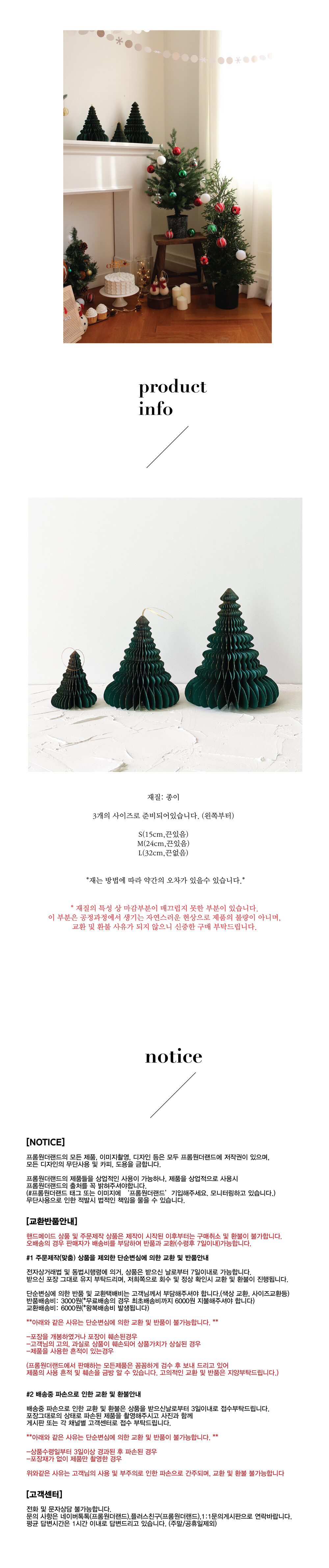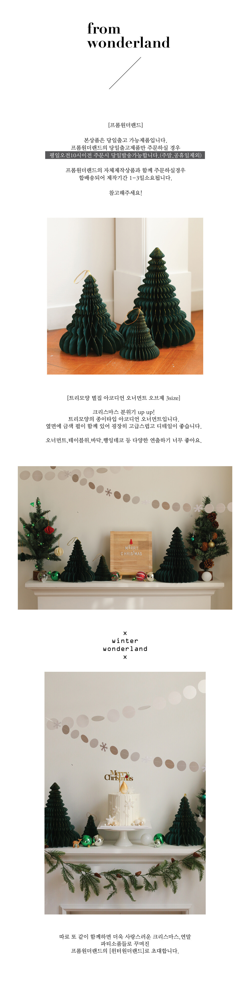 그린 트리모양 벌집 아코디언 크리스마스 오너먼트 오브제 3size
