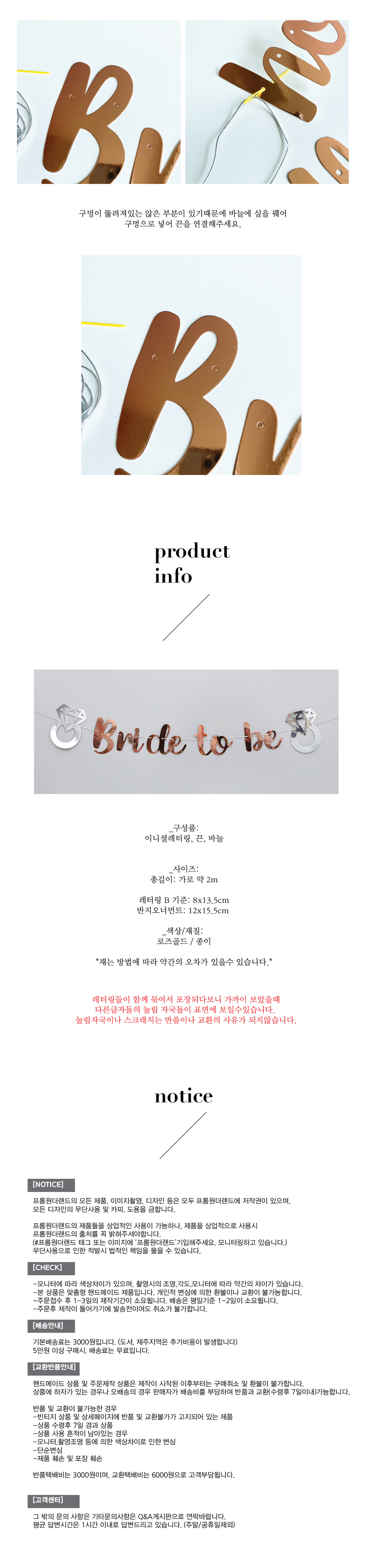캘리그라피 브라이덜샤워 브라이드투비 로즈골드 가랜드 (2 type)