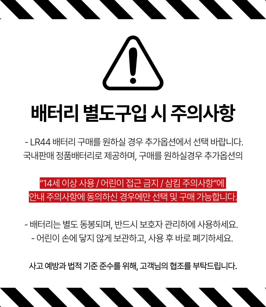 본상품은 제품1개당 LR44건전지 3알이 들어갑니다.