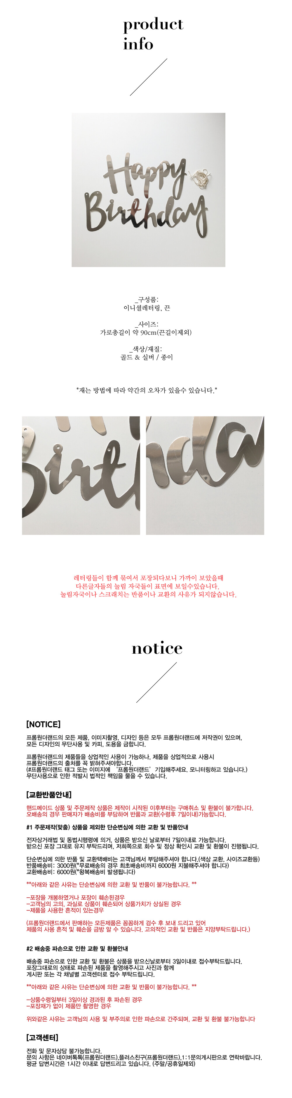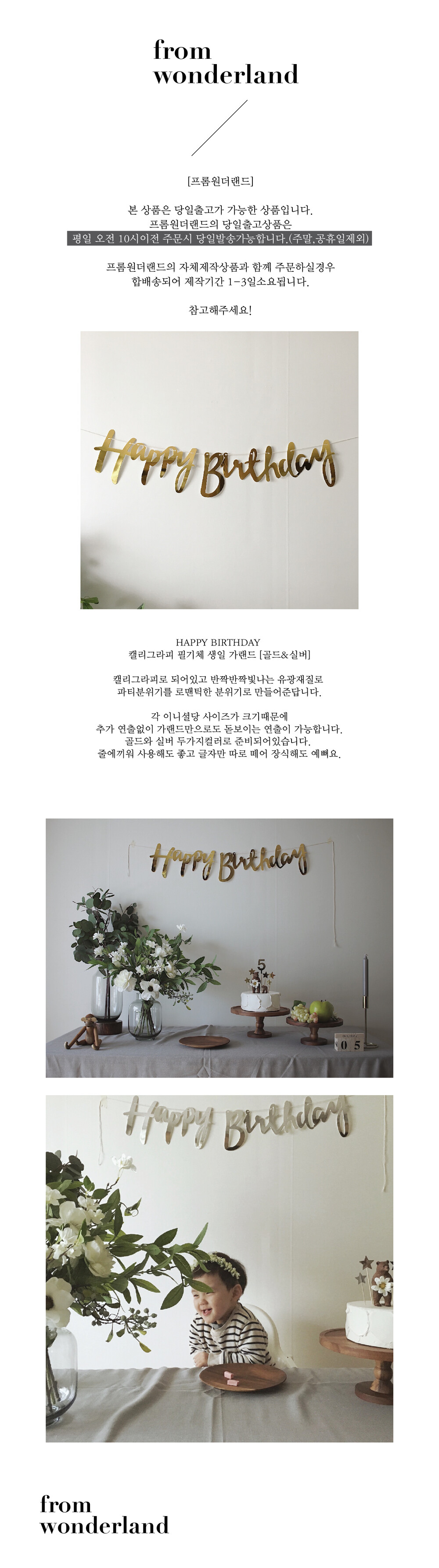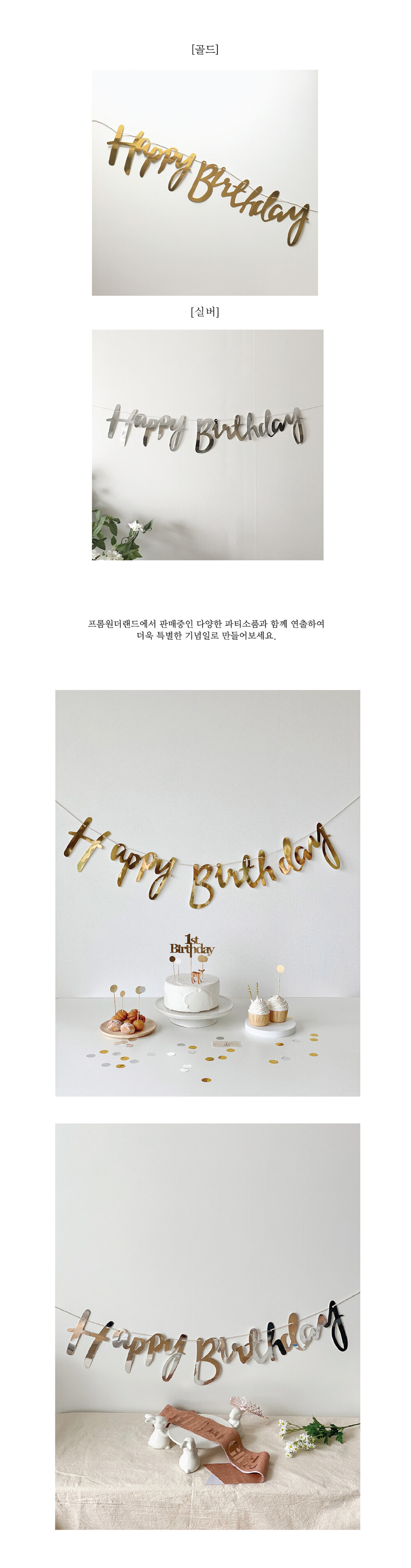 캘리그라피 필기체 생일축하가랜드 골드&실버