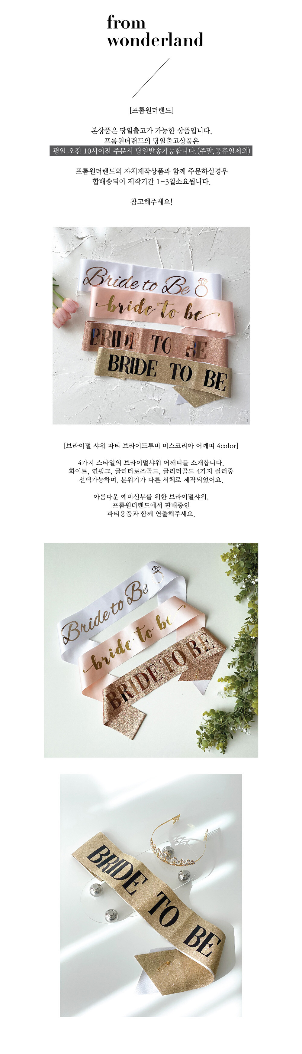 브라이덜샤워 미스코리아 어깨띠 브라이드투비 파티 4color
