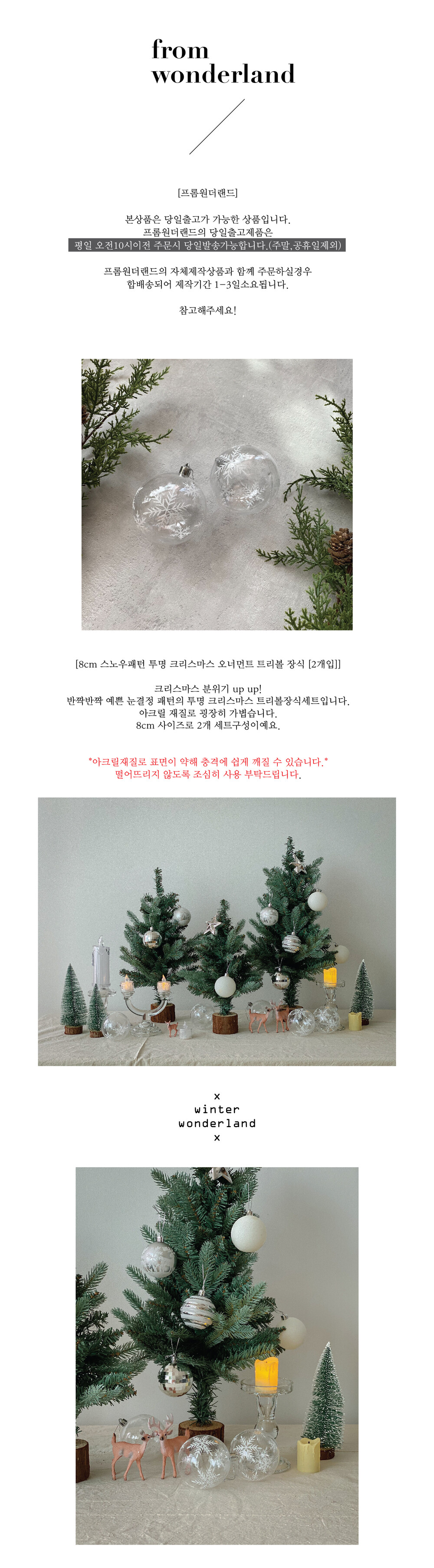 8cm 스노우패턴 투명 크리스마스 오너먼트 트리볼 장식 [2개입]