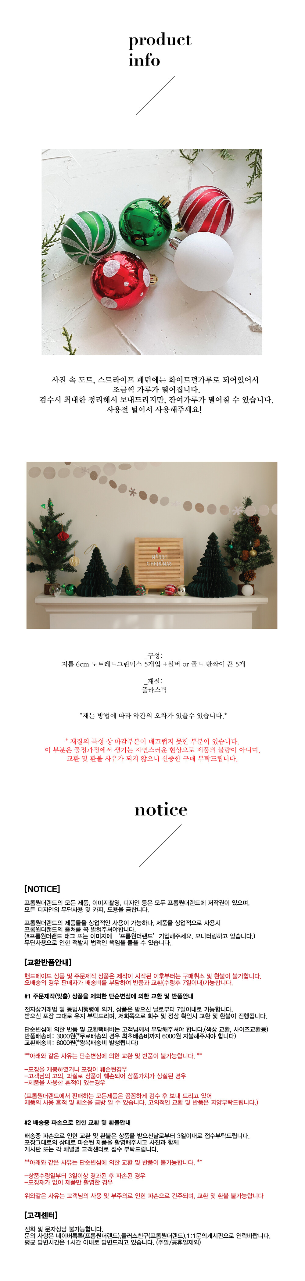 6cm 크리스마스 오너먼트 트리볼 장식 [도트레드그린믹스 /5개세트]