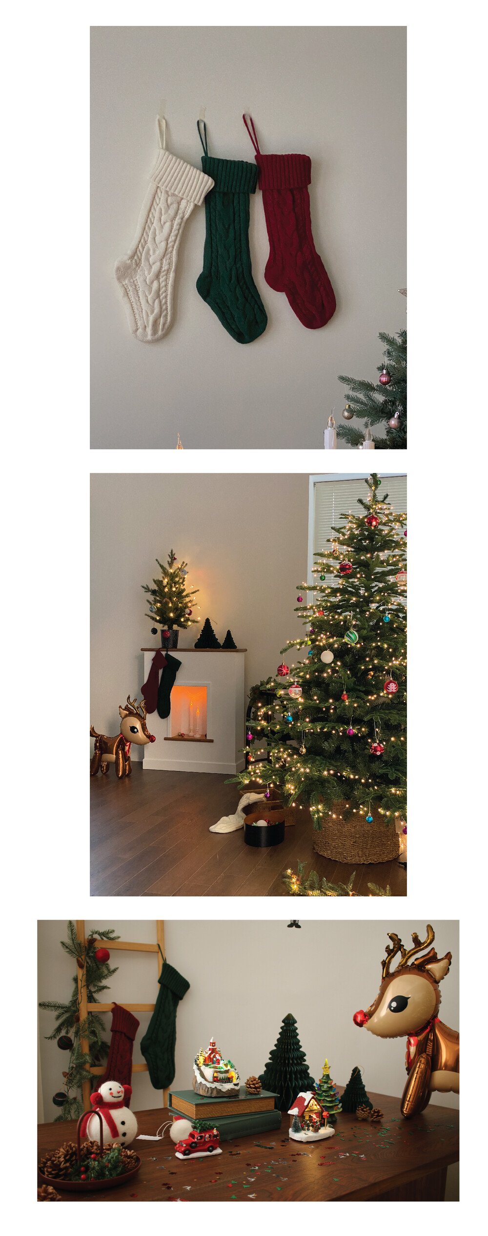 46cm 니트 크리스마스 양말장식 3color [1개입]