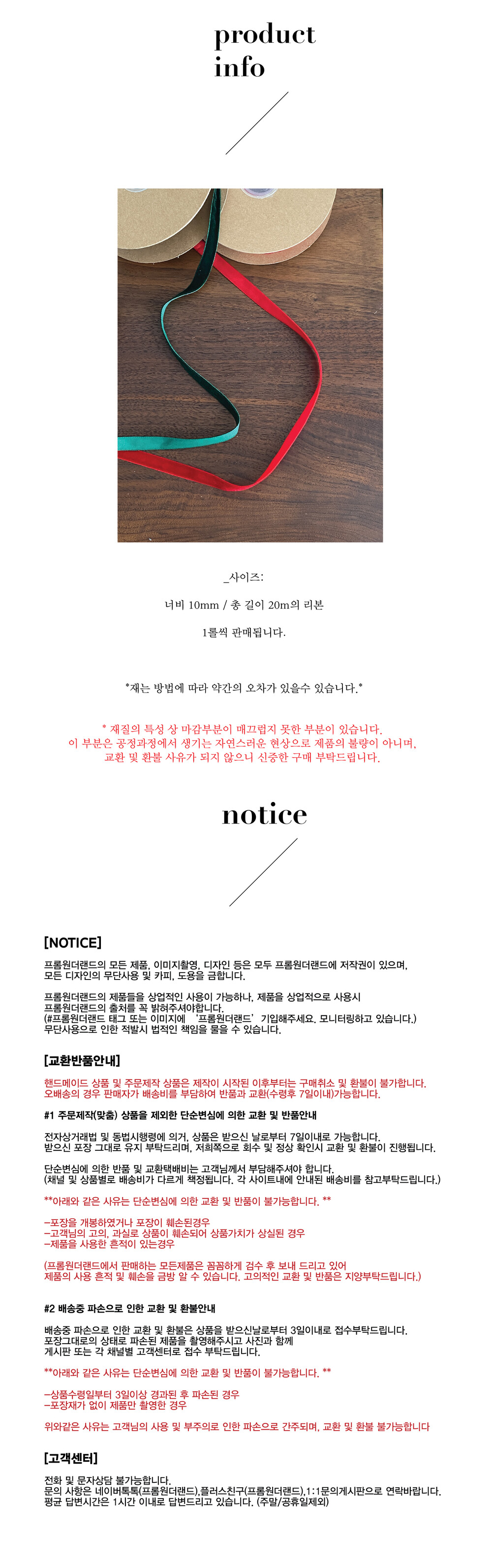 레드&그린 선물포장 벨벳 리본 2color [10mm/20m]