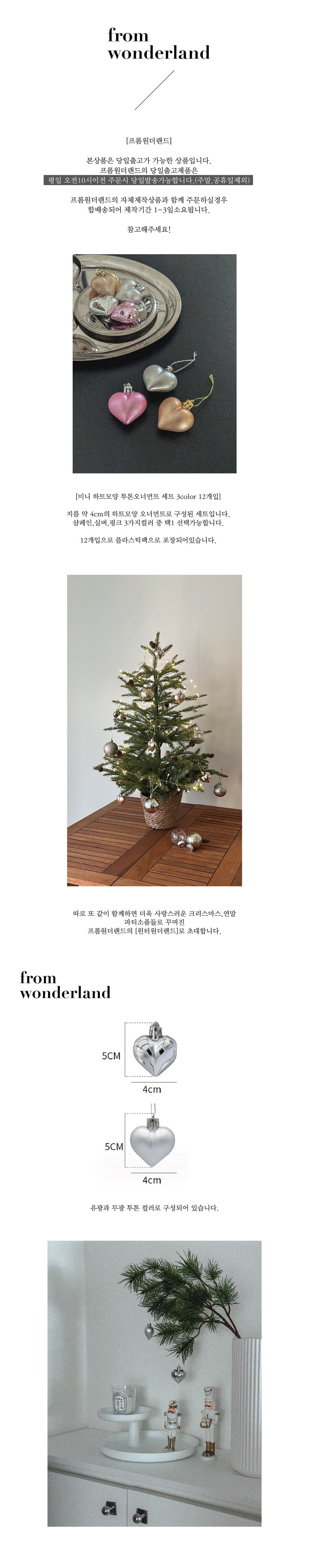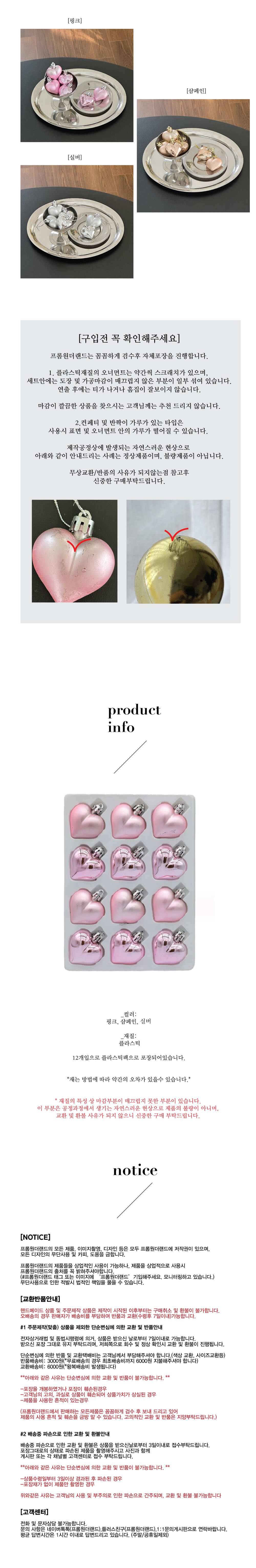 지름 약 4cm의 하트모양 오너먼트로 구성된 세트입니다.