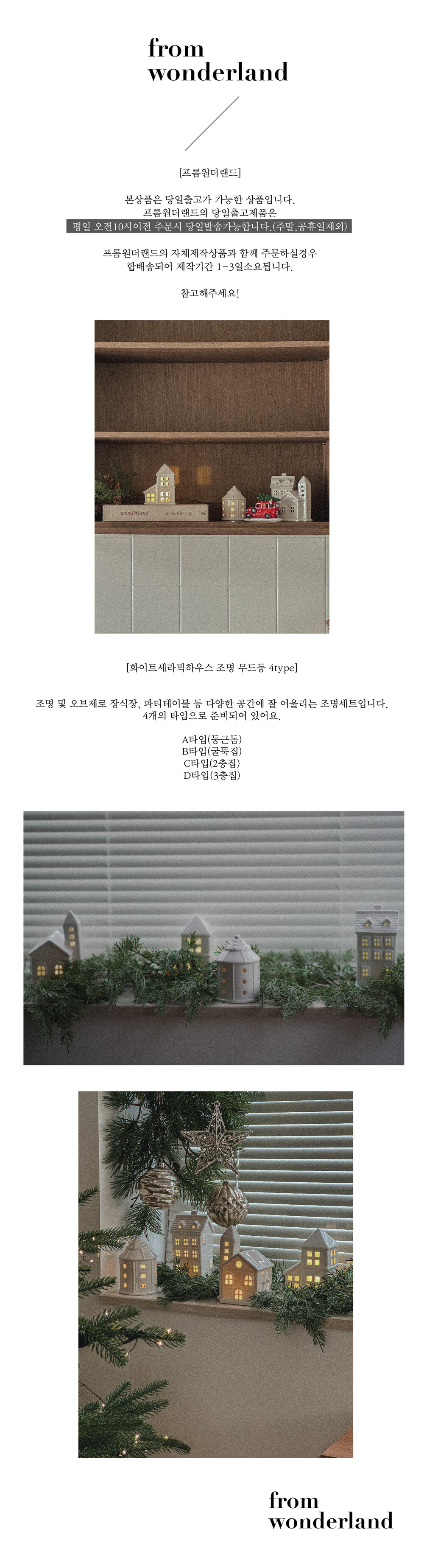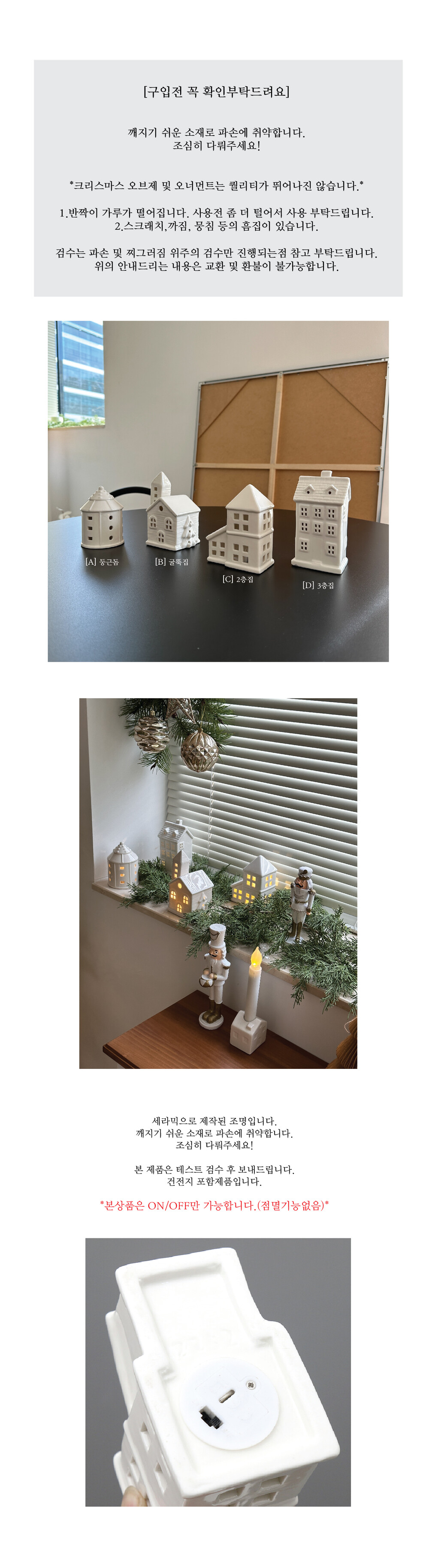 화이트세라믹하우스 크리스마스 오브제 조명 무드등 장식 4type