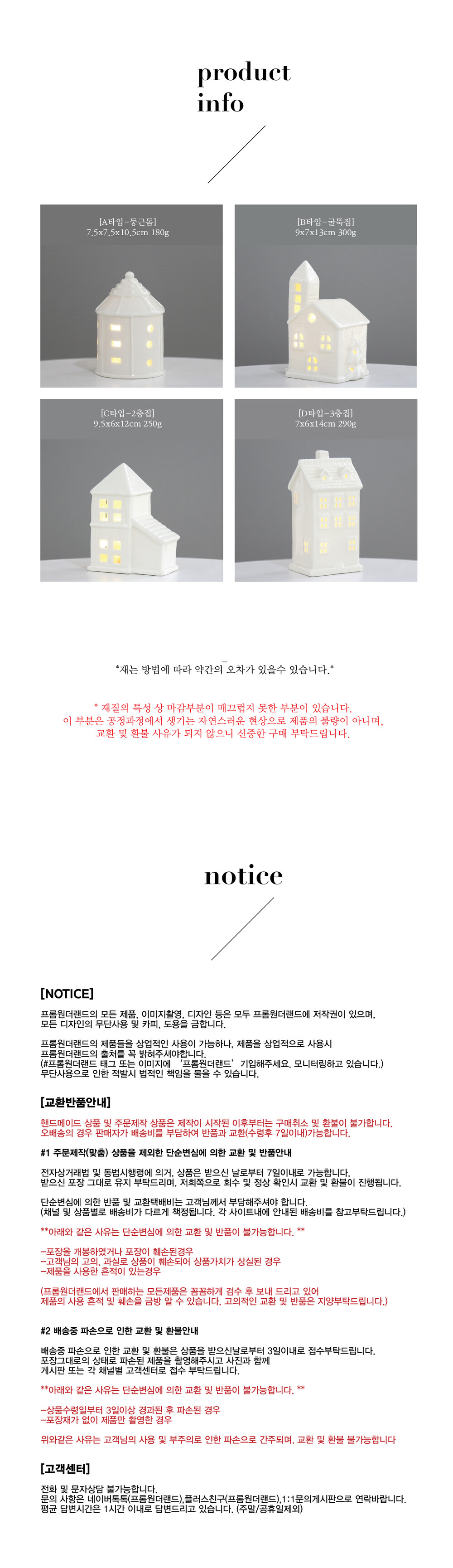 세라믹 소재로 깨지기 쉬운 소재로 파손에 취약합니다. 조심히 다뤄주세요!