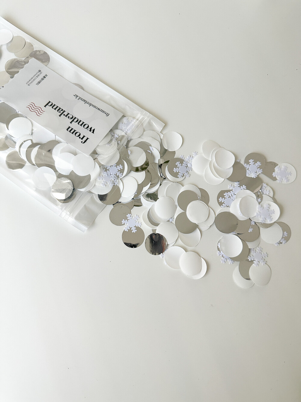 눈패턴의 메탈지와 화이트 & 실버 메탈지가 조합된 컨페티입니다.
