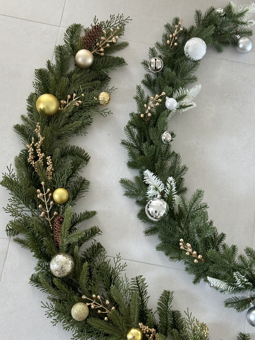 가랜드를 동그랗게 말아 묶어주시면 크리스마스리스로도 사용할 수 있어요.