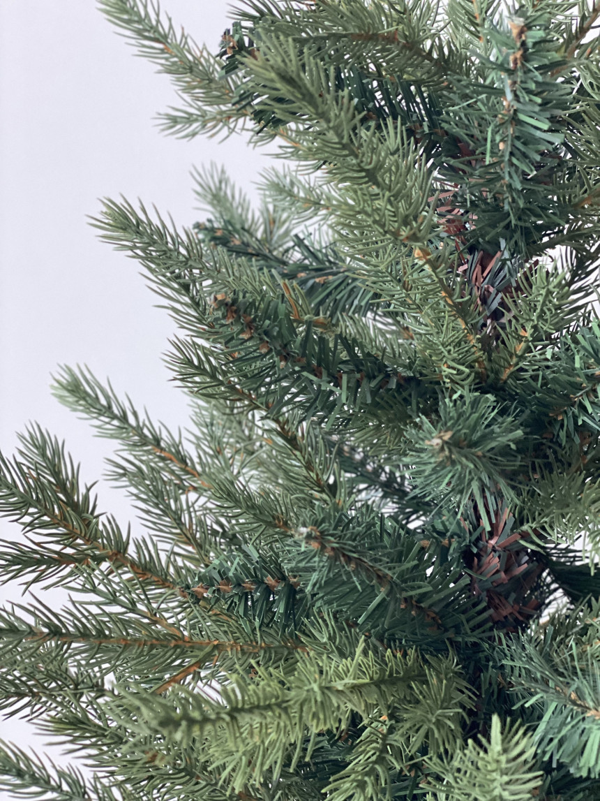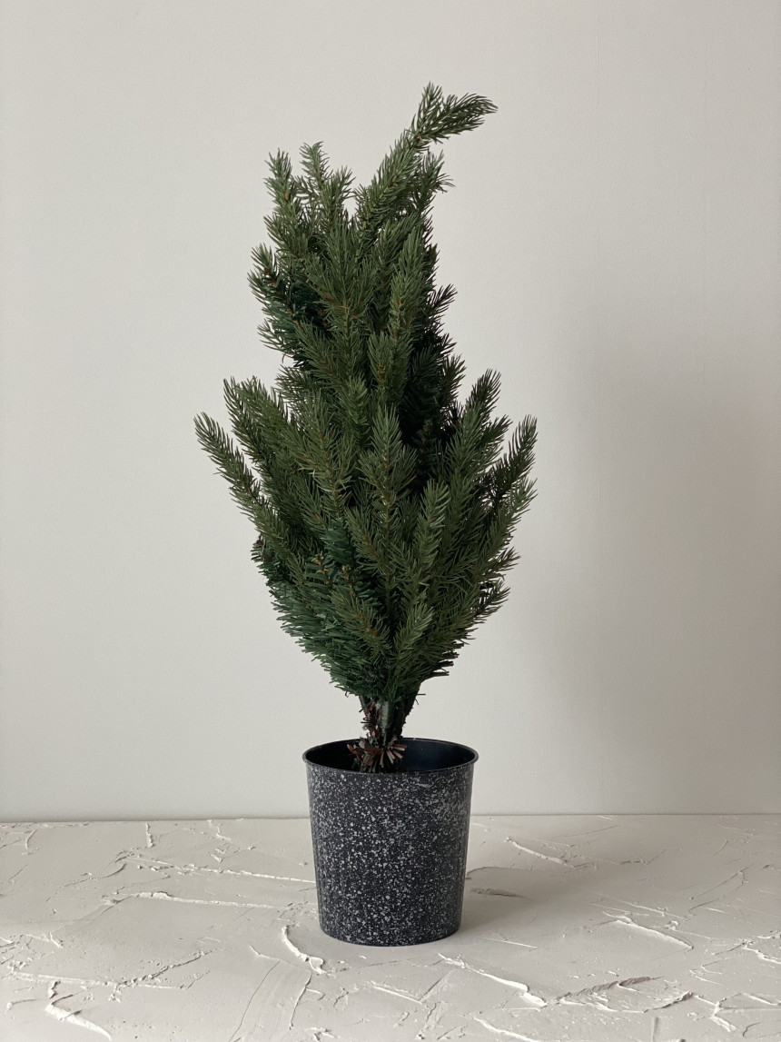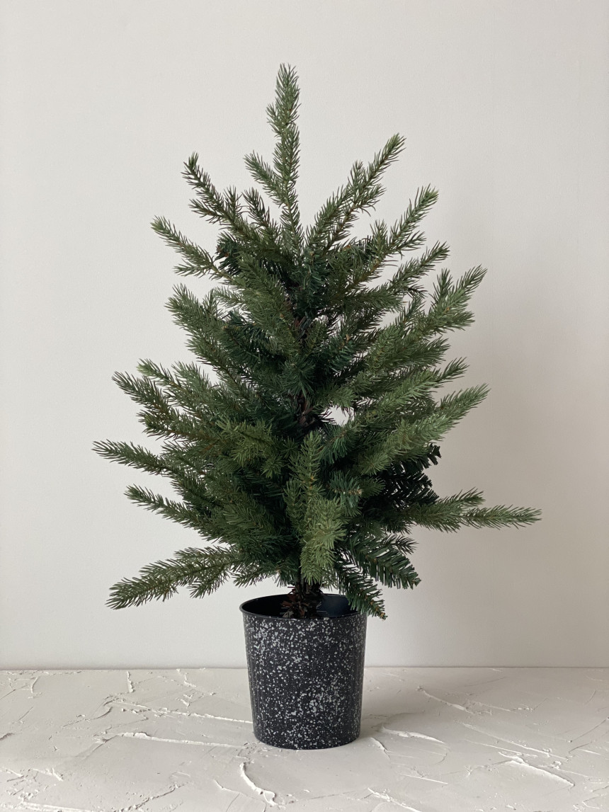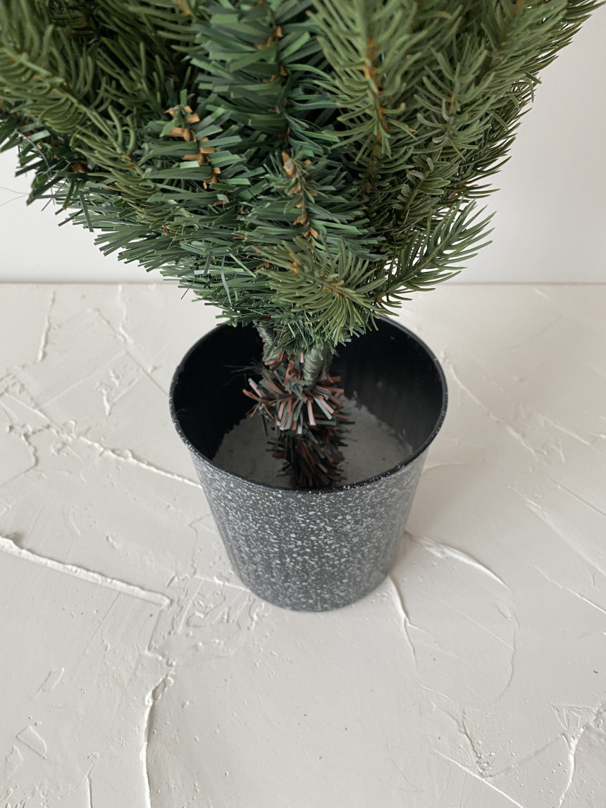 화분받침이 있는 무장식의 크리스마스 중형 트리 입니다.