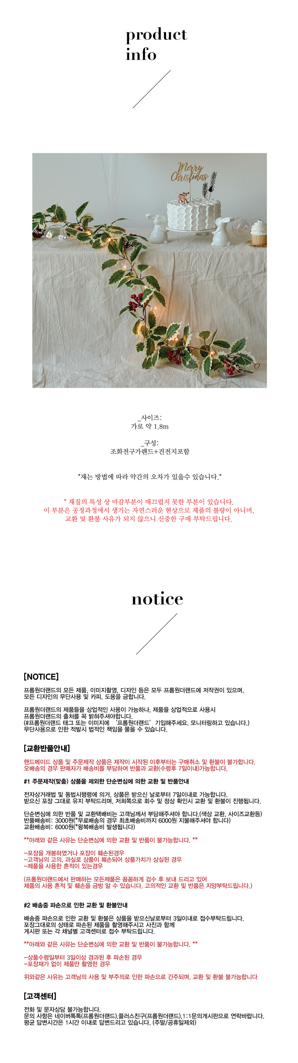 크리스마스 조화 전구 조명 가랜드 [홀리베리레드]