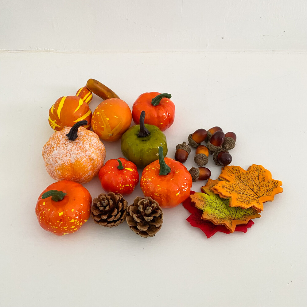 다양한 모양의 호박 8개 + 솔방울2개 + 도토리8개 + 단풍잎 대략 25개