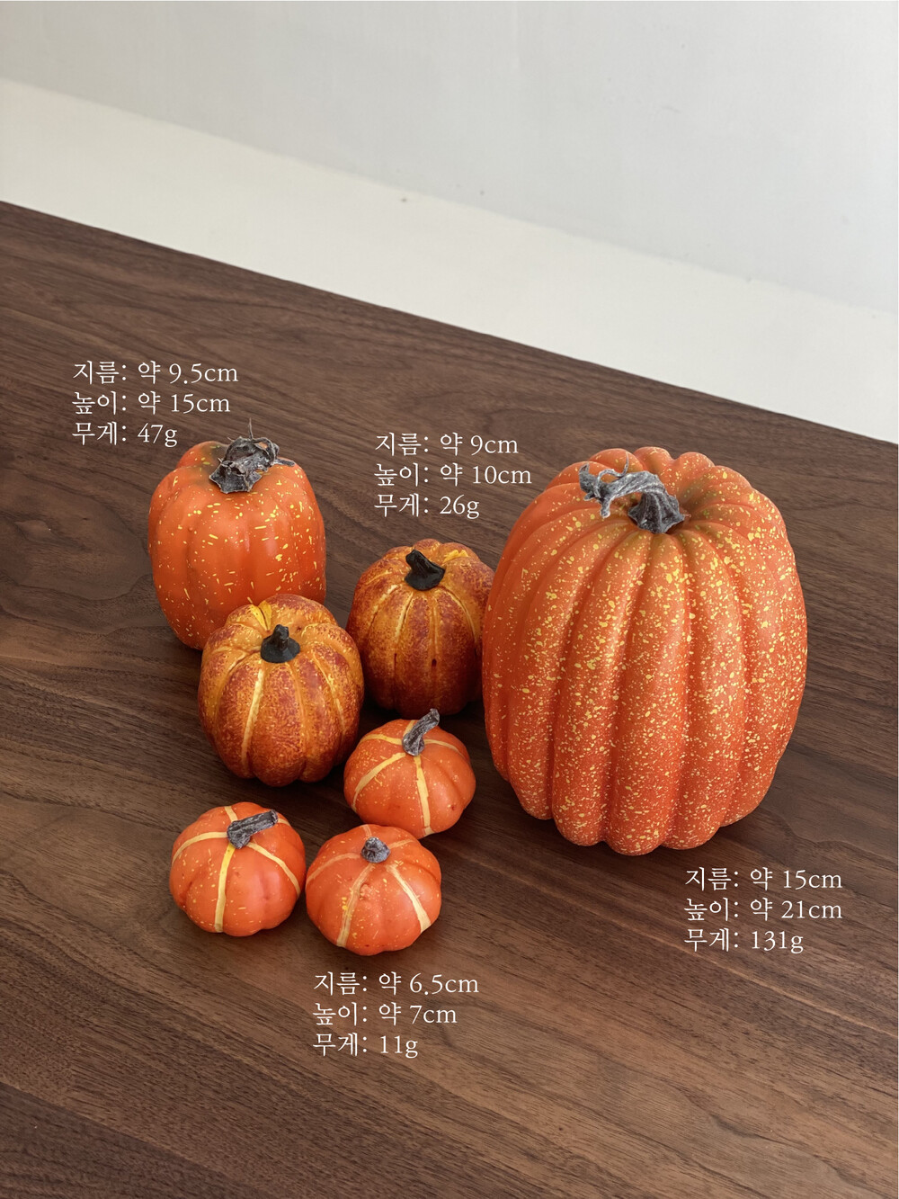 디테일이 좋은 다양한 사이즈의 7p호박모형세트입니다.
