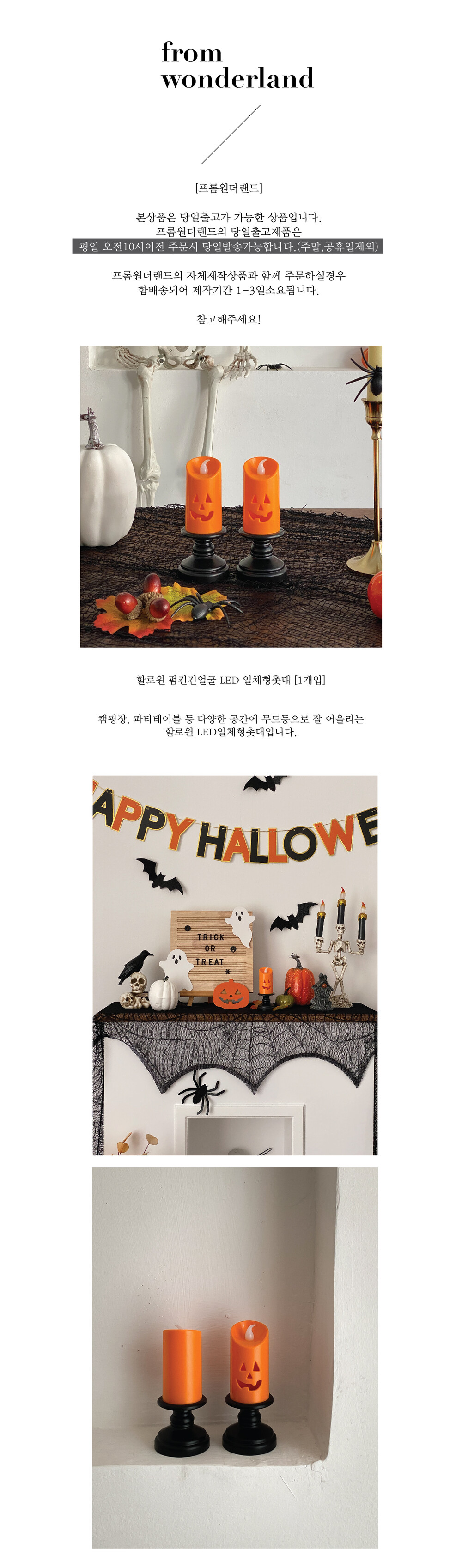 할로윈 펌킨긴얼굴 LED 일체형촛대 [1개입]