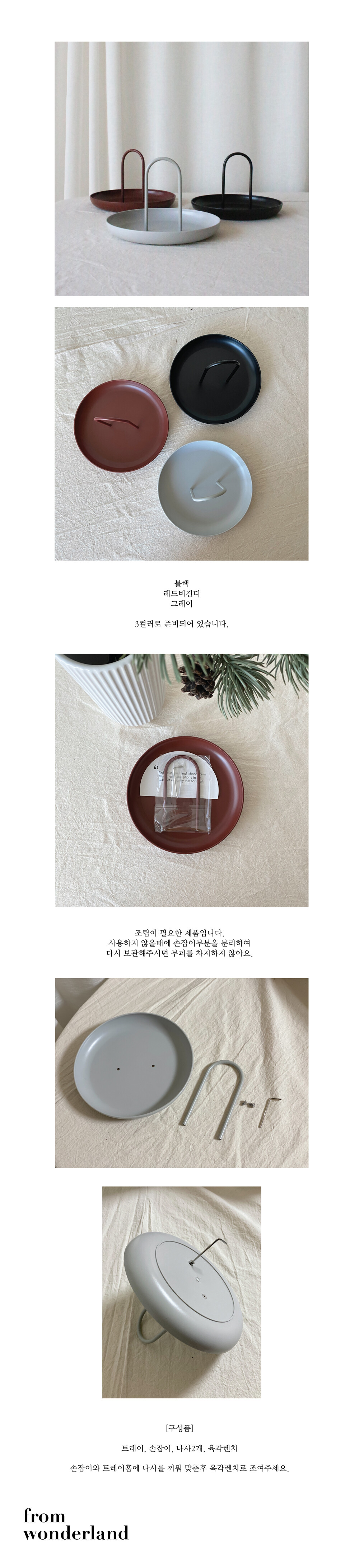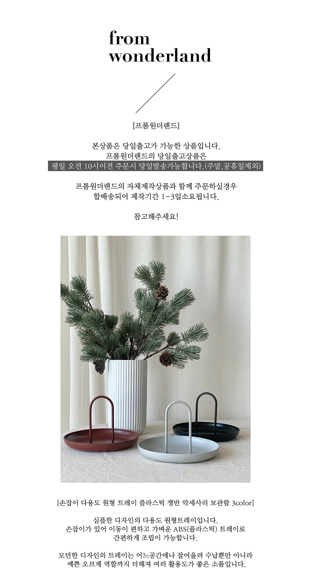 손잡이 다용도 원형 트레이 플라스틱 쟁반 [3color]