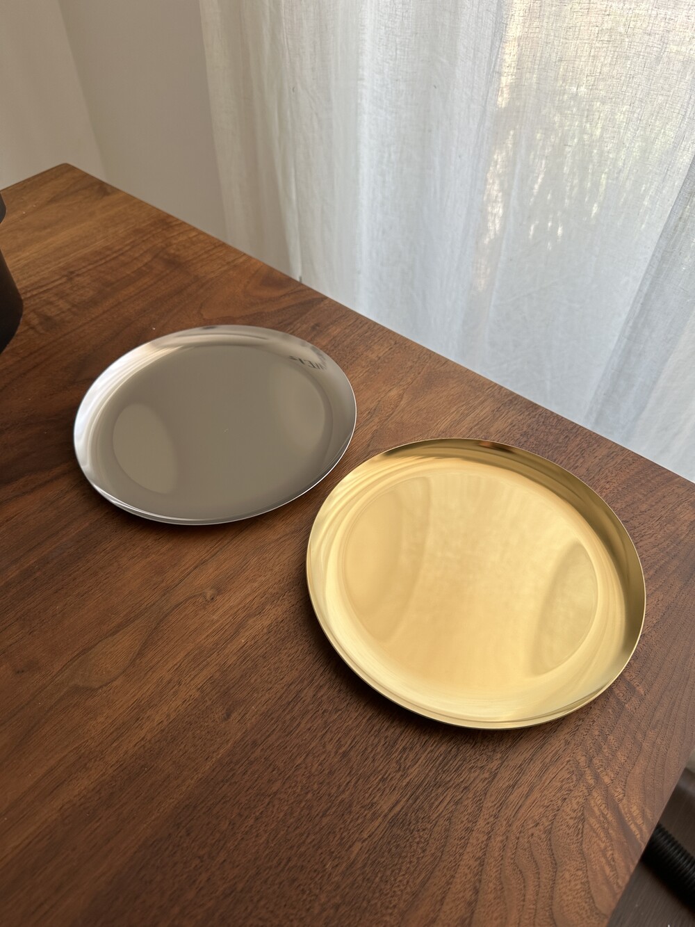 [골드&실버 메탈 원형 쟁반 트레이 [지름 약 20cm] ]