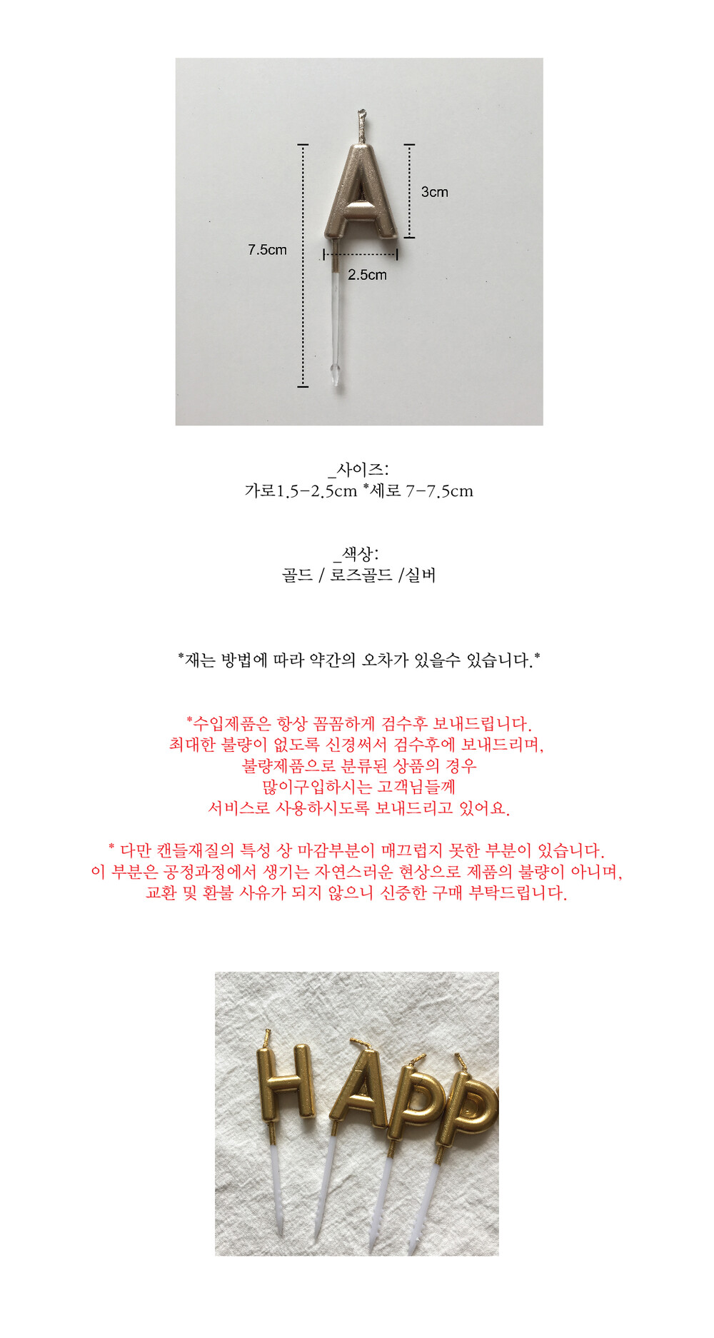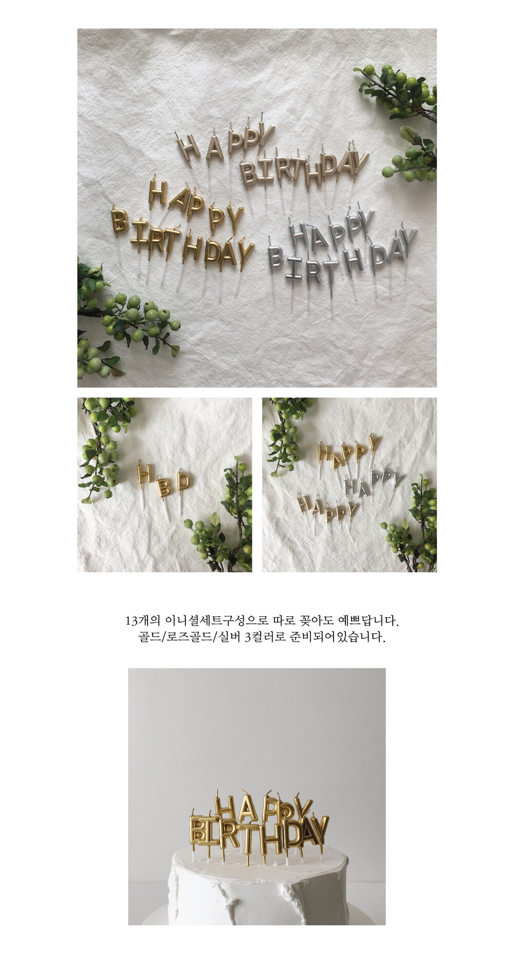 해피버스데이초 골드/로즈골드/실버 3컬러 메탈 알파벳 생일초 캔들