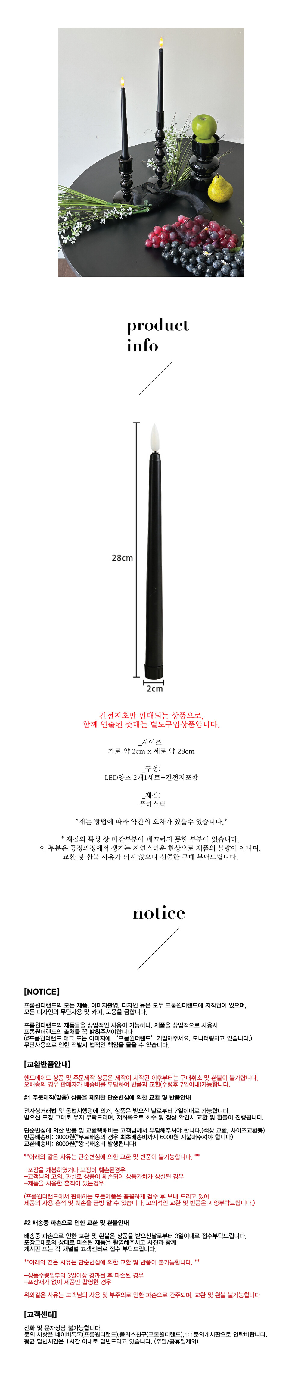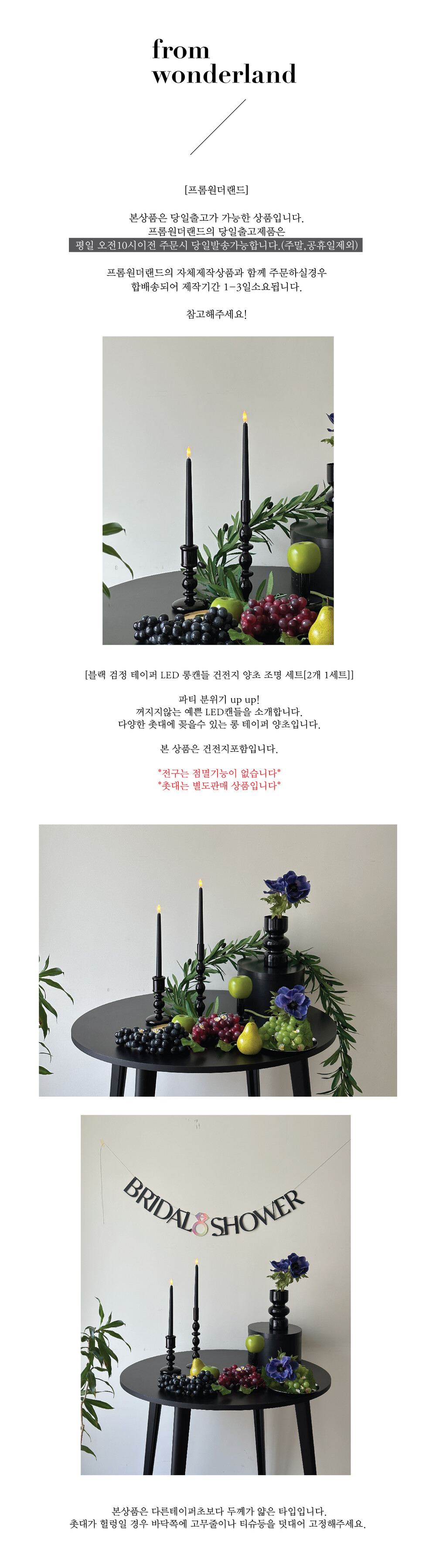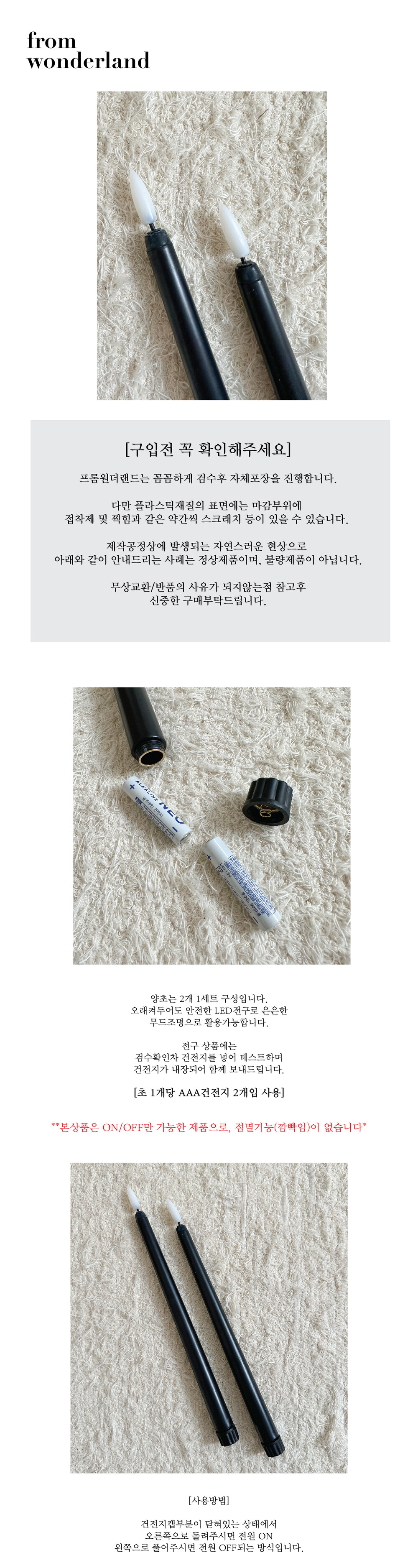 블랙 검정 테이퍼 LED 롱캔들 건전지 양초 조명 세트[2개 1세트]