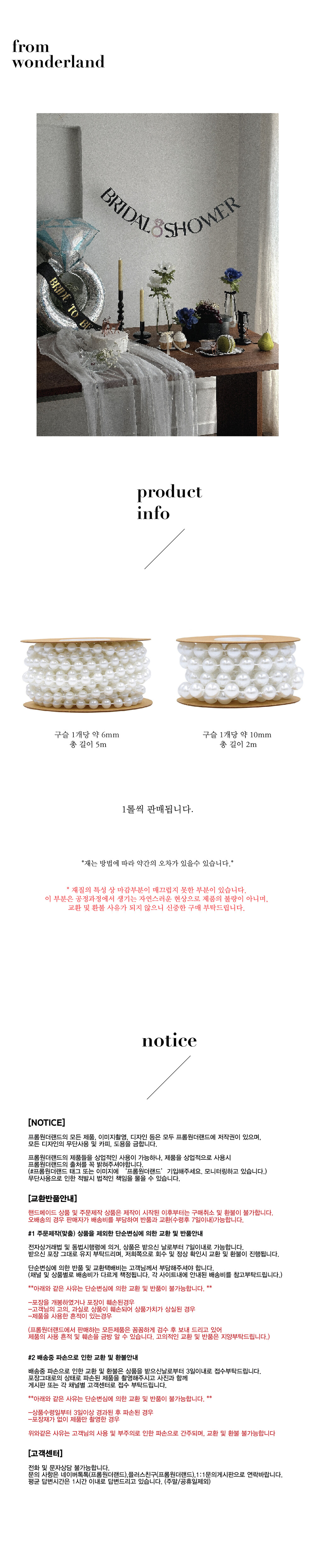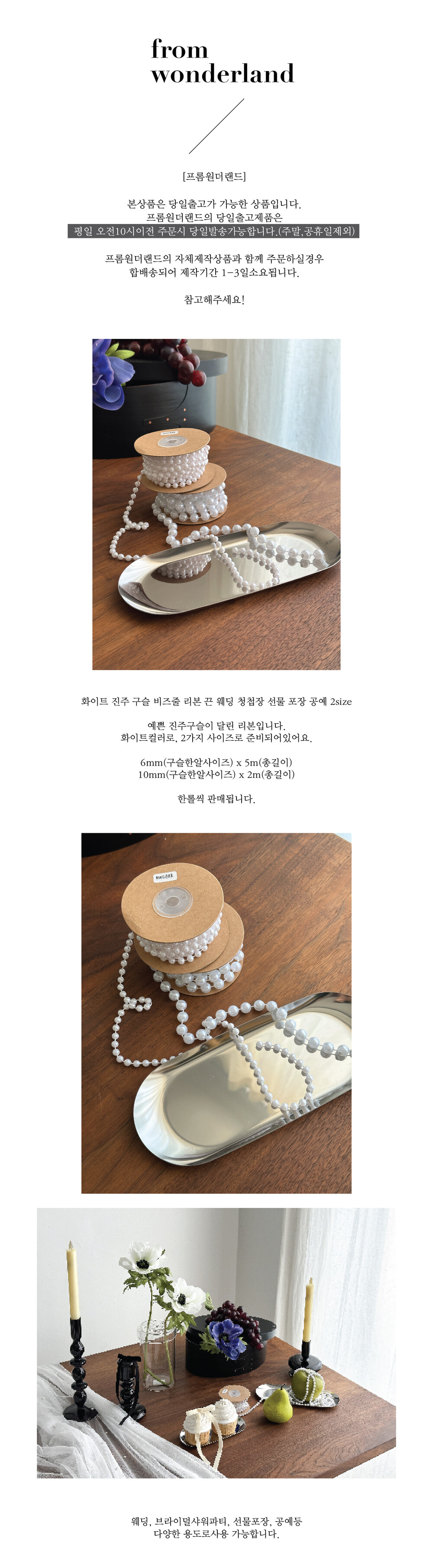 화이트 진주 구슬 비즈줄 리본 끈 웨딩 청첩장 선물 포장 공예 2size