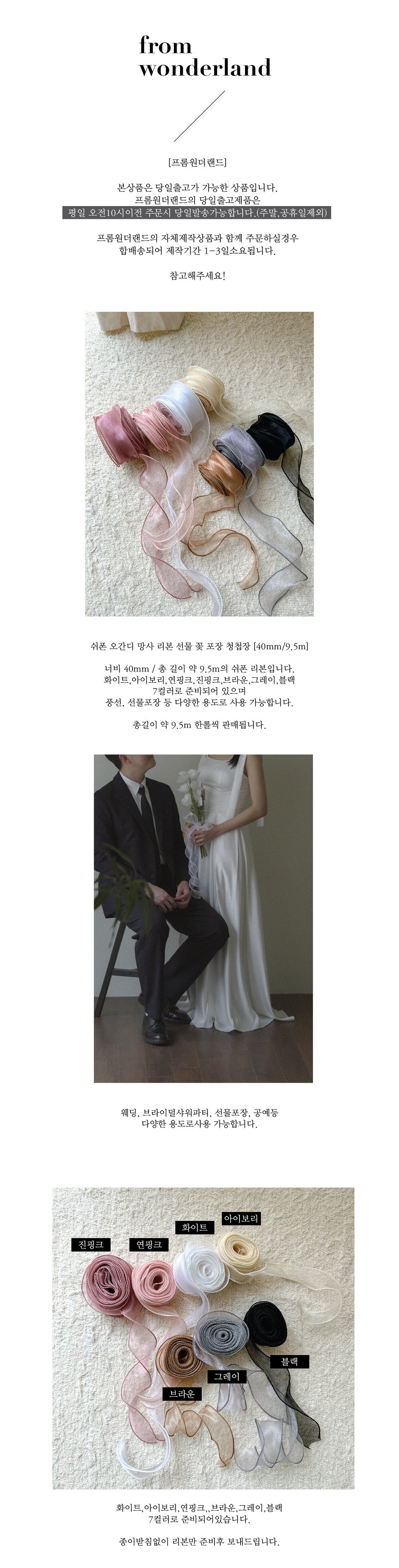 쉬폰 오간디 망사 실루엣 리본 선물 꽃 포장 청첩장 [40mm/9.5m]