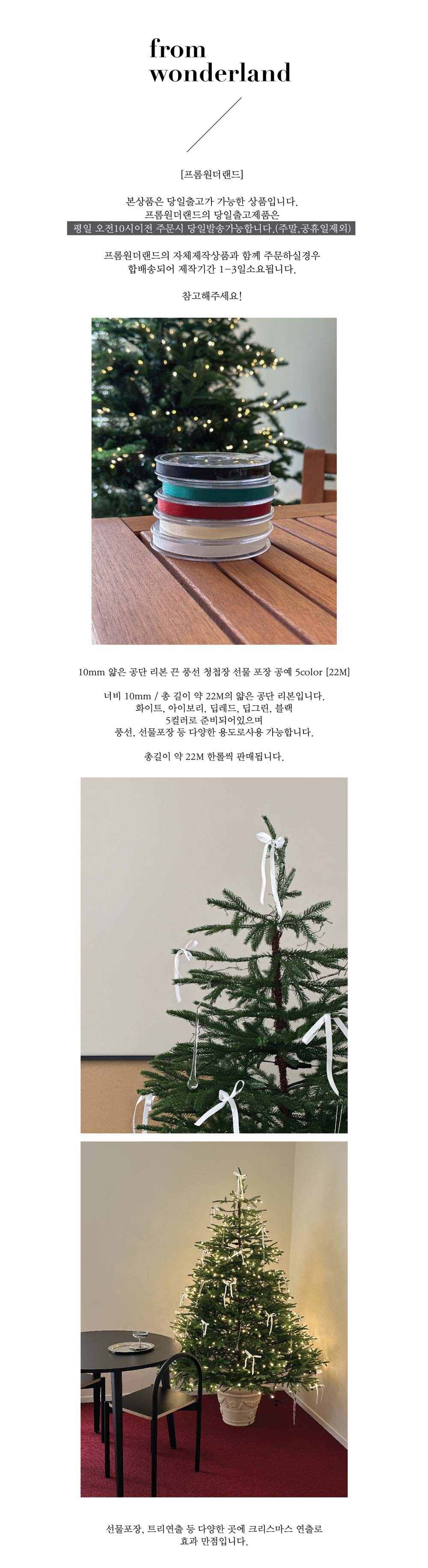 너비 10mm / 총 길이 약 22m의 얇은 공단 리본입니다.