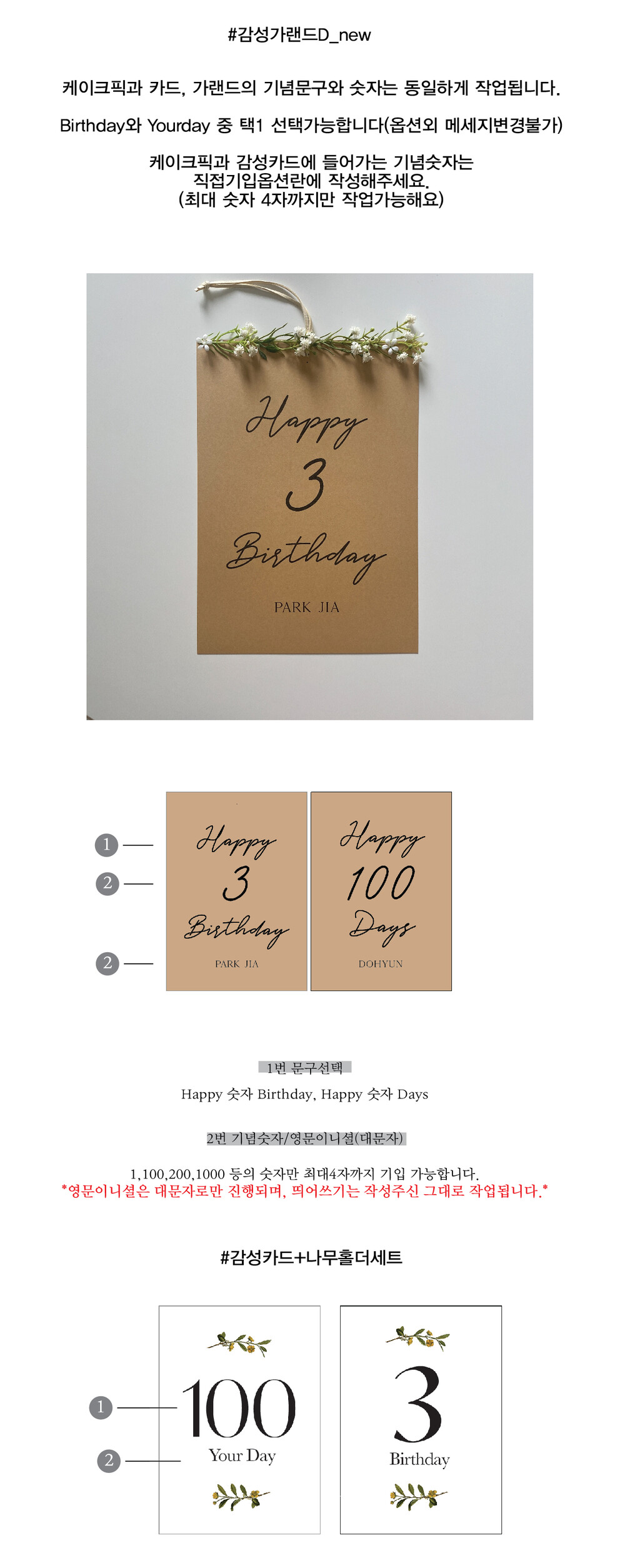 가랜드와 카드에 들어갈 기념문구는 Birthday or Yourday 중 택1선택가능합니다.