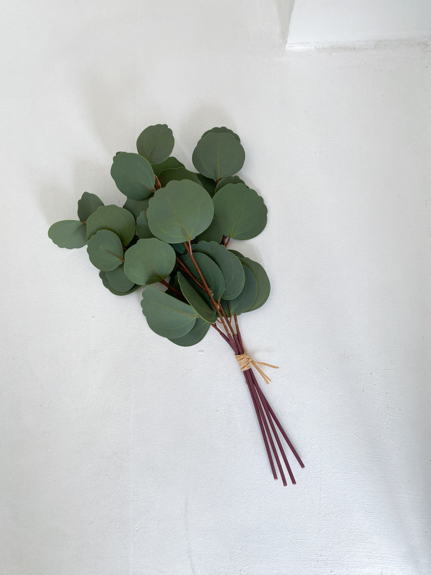 고퀄리티의 넓은 유칼립투스잎으로 구성된 조화가지 세트입니다.