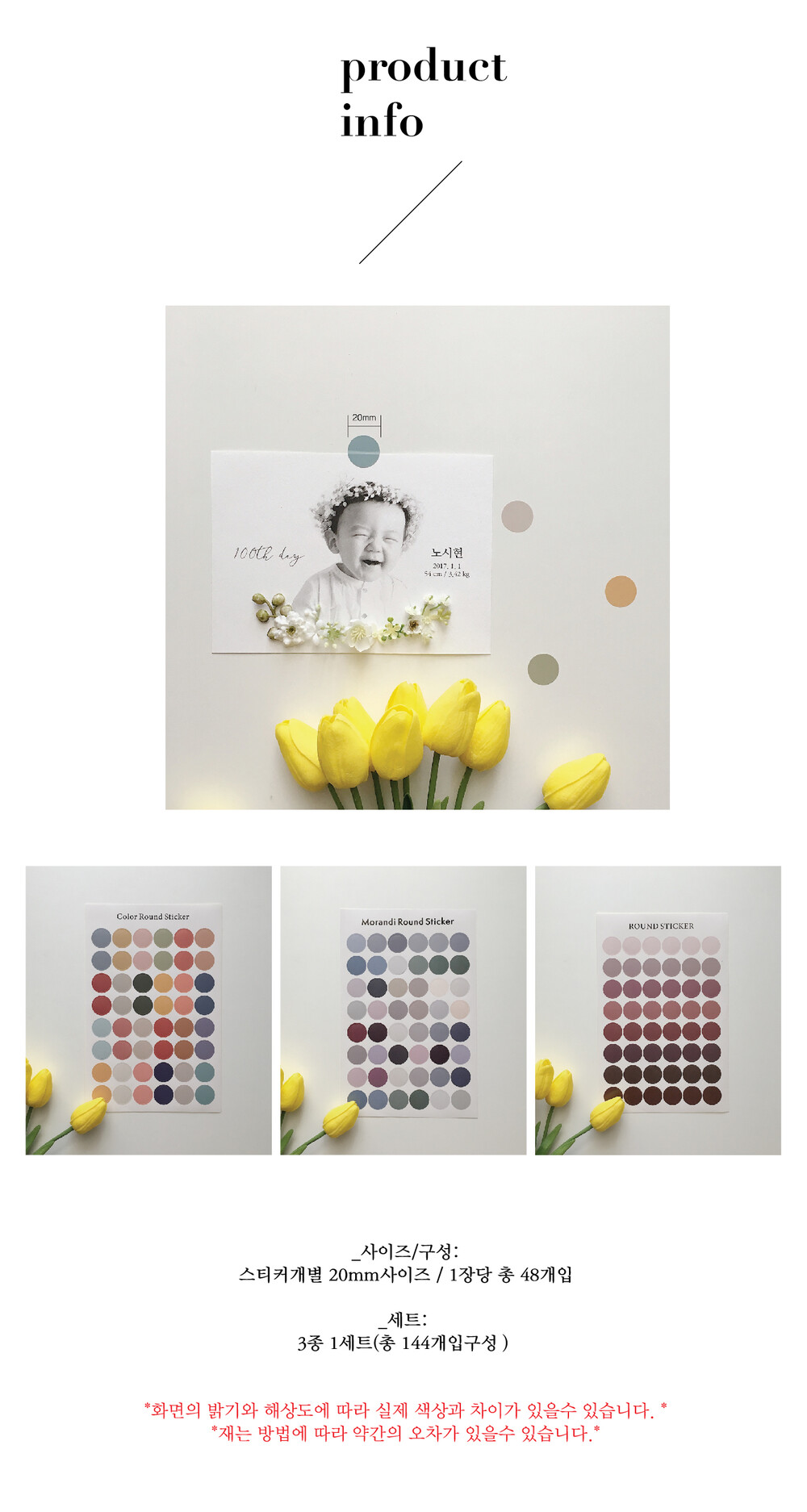 파스텔 라운드 원형 도트 스티커 3종세트 [20mm]