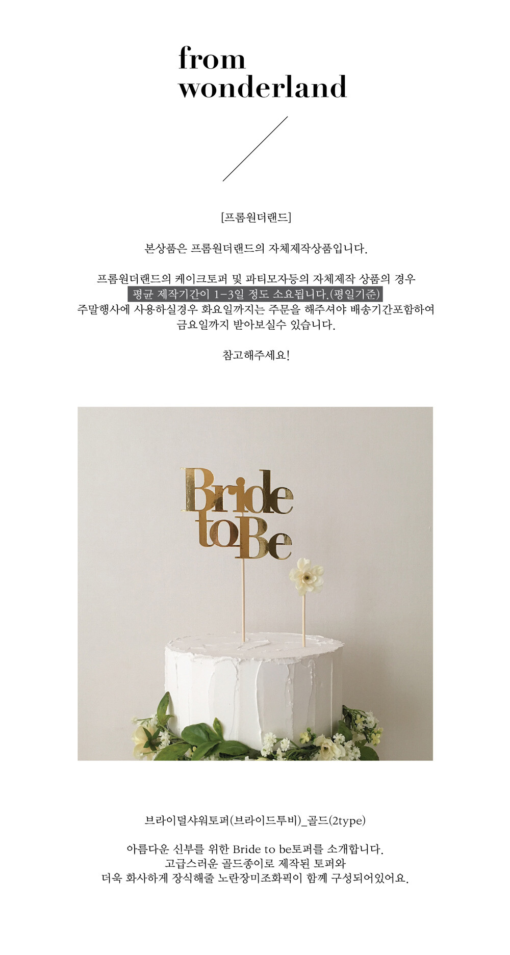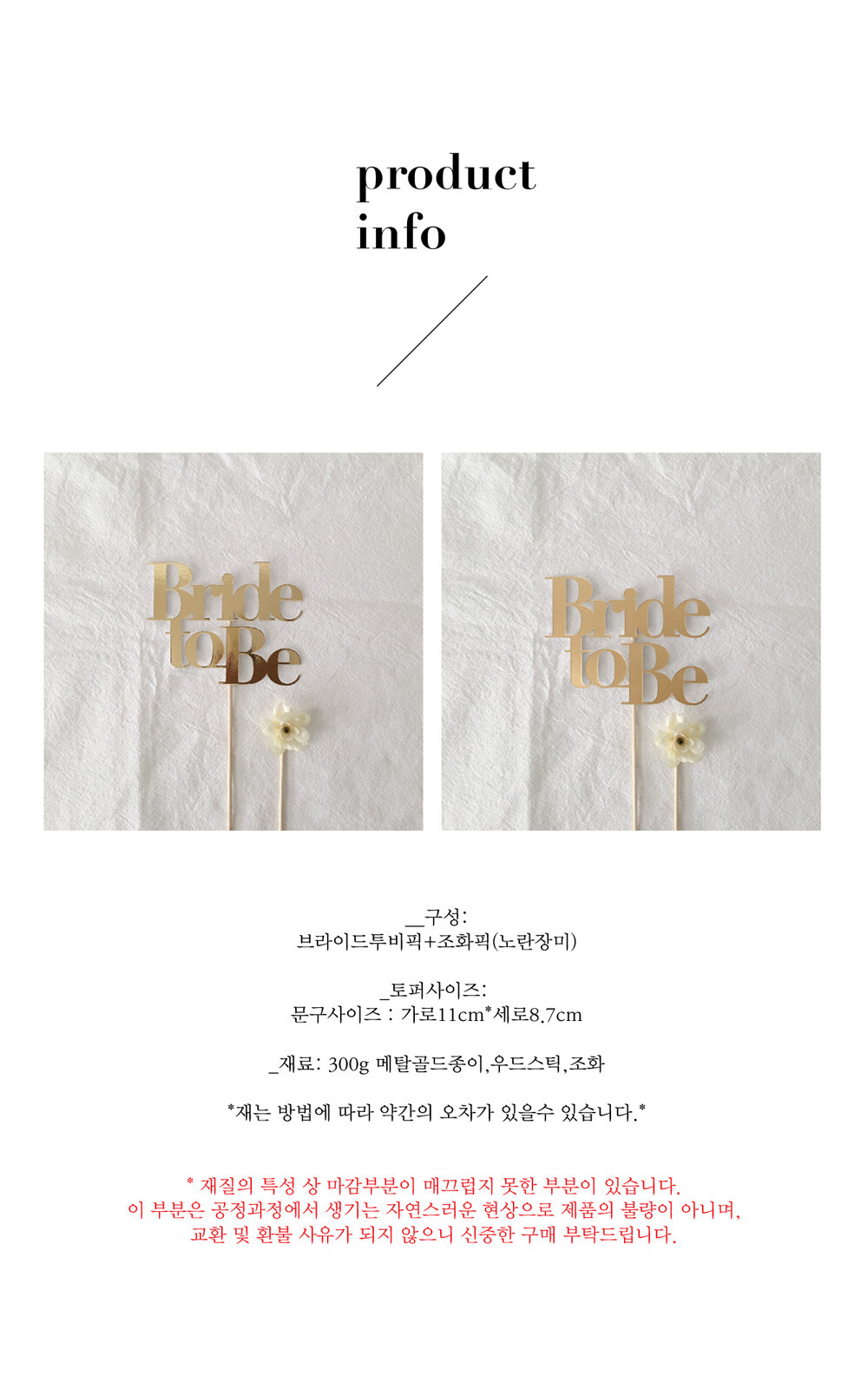 명조 브라이덜샤워 브라이드투비토퍼 골드 2type